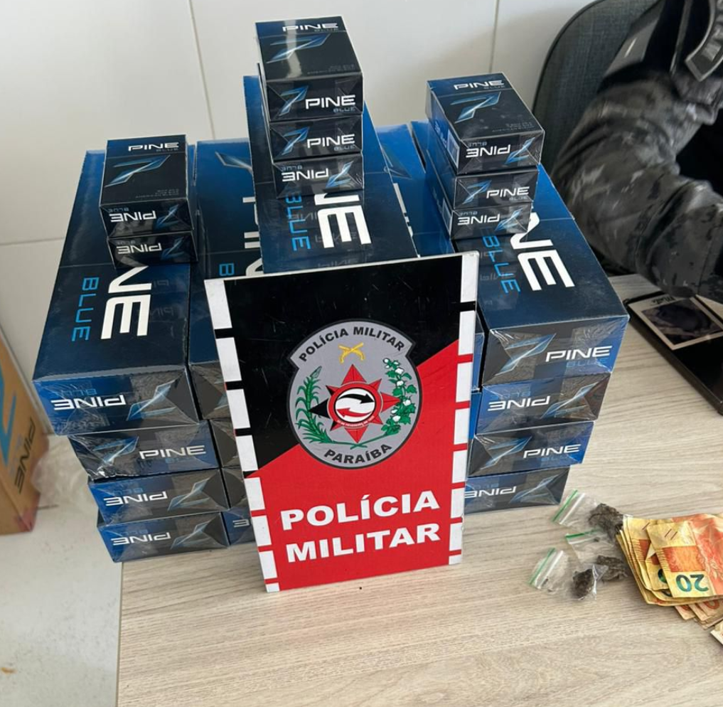 Uma ação da Polícia Militar da Paraíba resultou na apreensão de drogas, dinheiro em espécie e cigarros contrabandeados no município de Cajazeiras, no Sertão do estado.